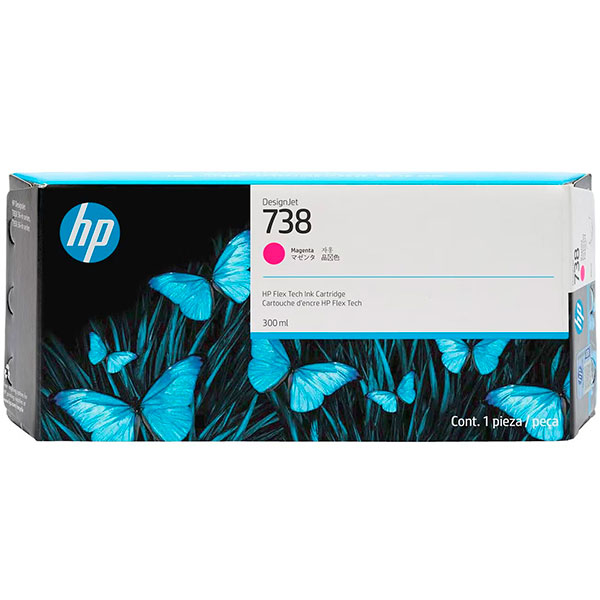 El HP 738 Magenta (300 ml, SKU 676M7A) es un cartucho de tinta original diseñado para impresoras HP DesignJet de formato ancho.